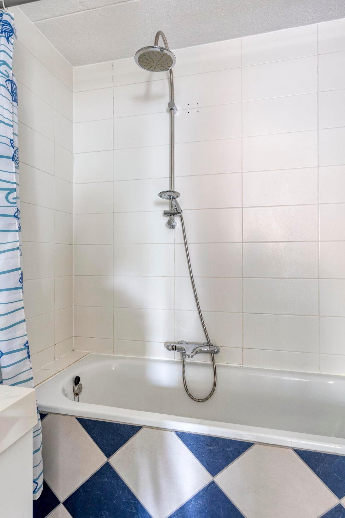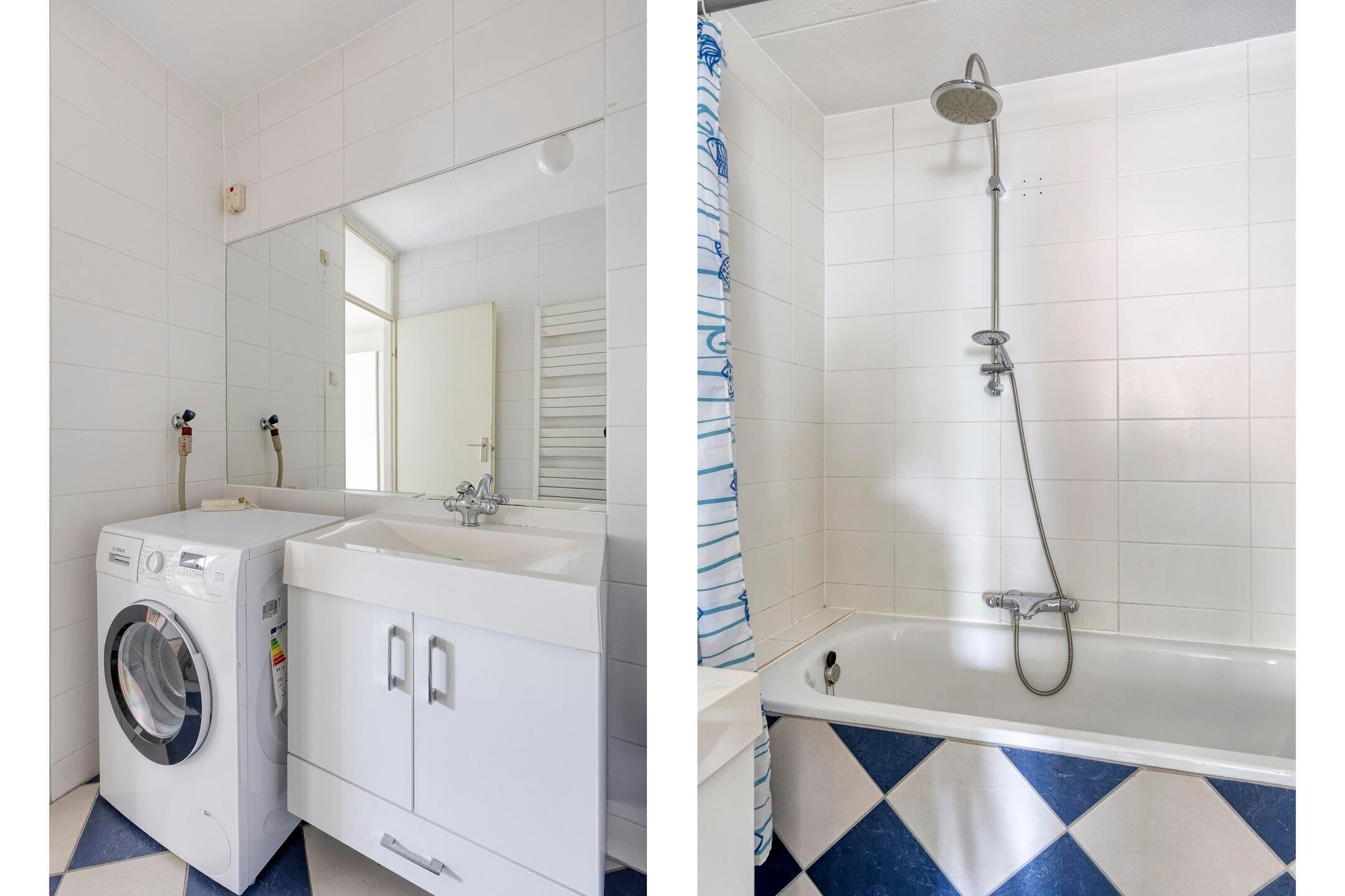 - Ligbad, wastafel, wastafelmeubel, wasmachineaansluiting