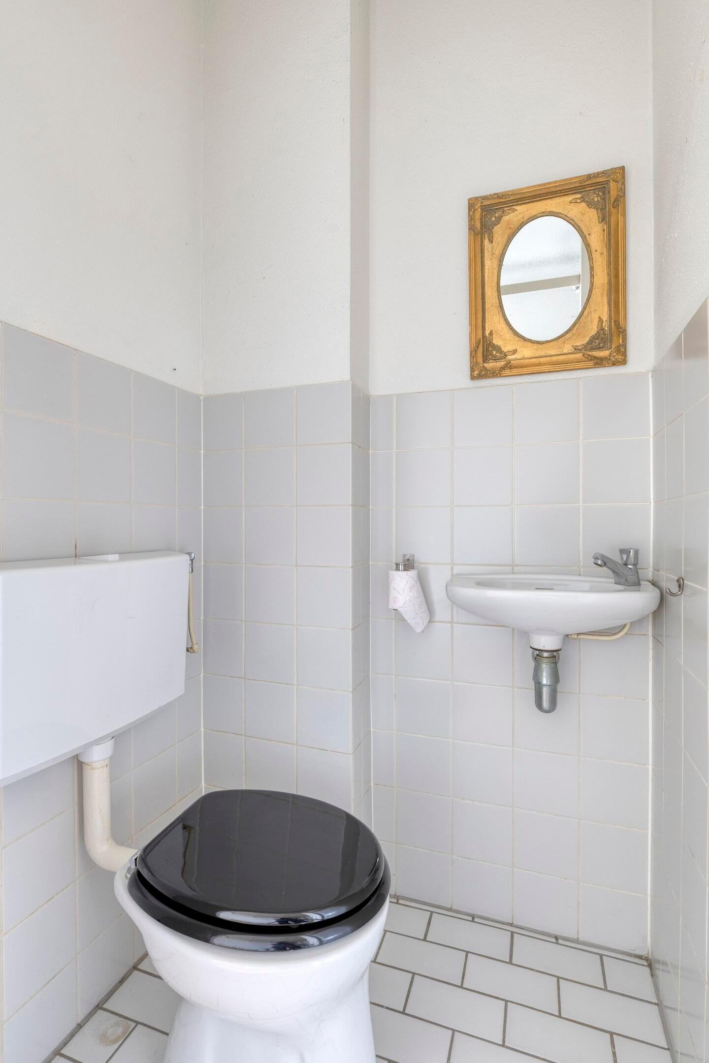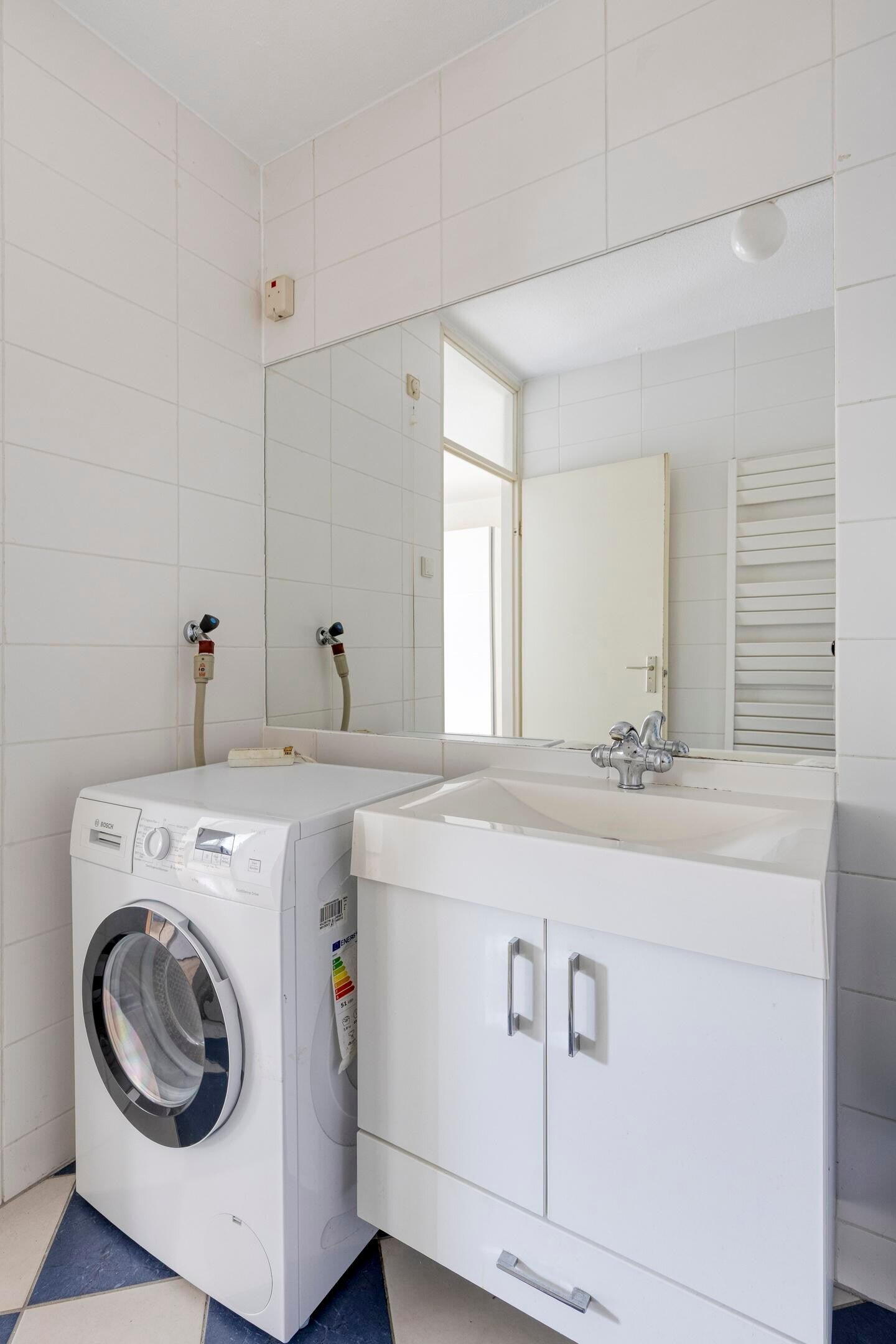 De badkamer is praktisch uitgevoerd en sluit goed aan bij de rest van het appartement.