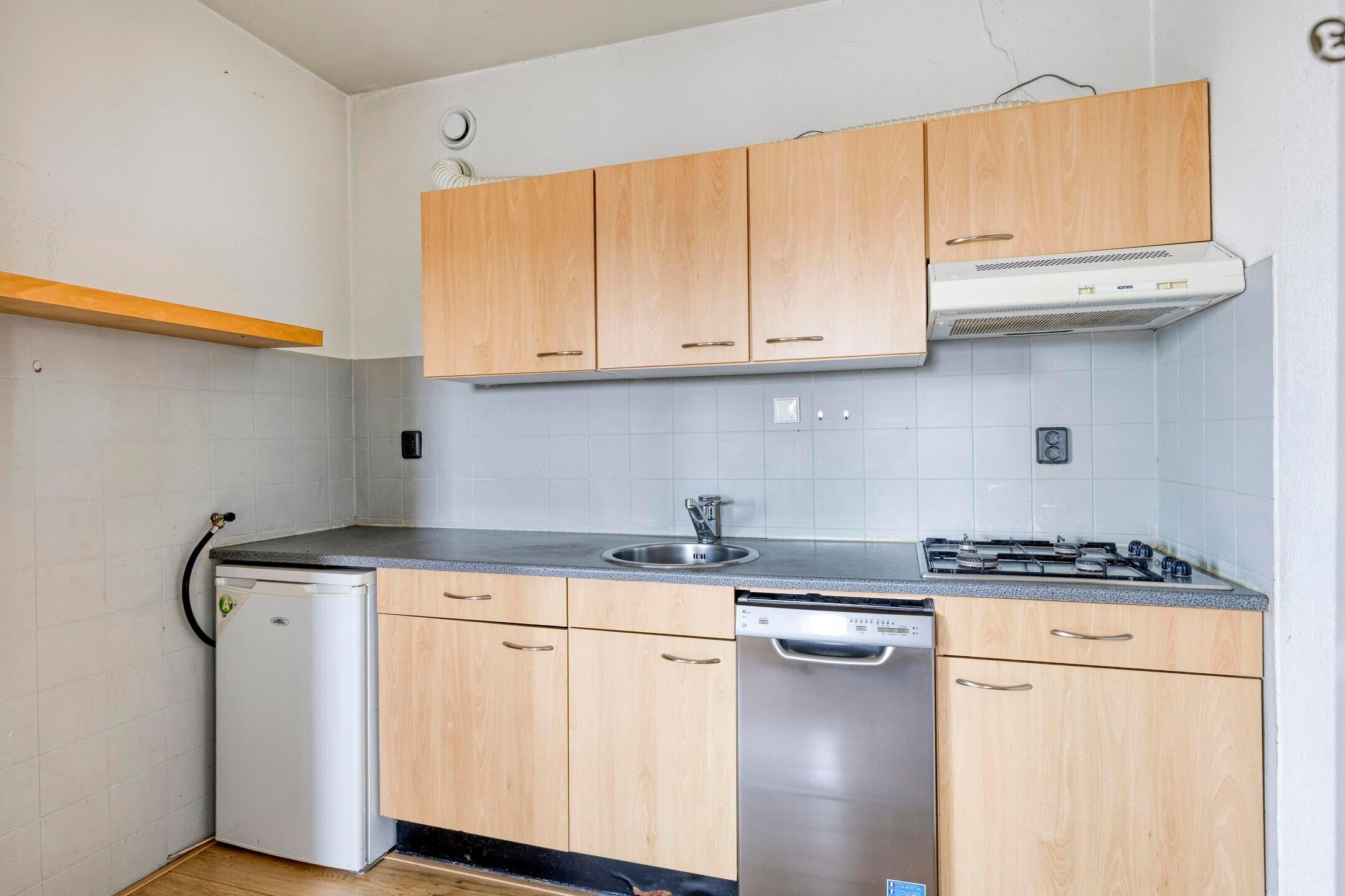 De keuken van 4,2 m² is eenvoudig maar functioneel ingericht en voorzien van de basisvoorzieningen. Een fijne ruimte voor dagelijks gebruik, met mogelijkheden om deze eventueel naar eigen wens te moderniseren.